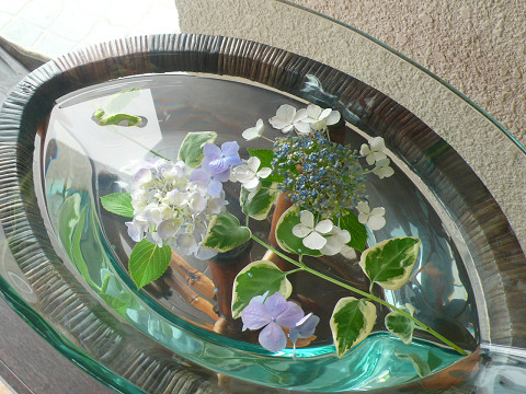この時期の花游の館内も色々なところでアジサイを使っております。