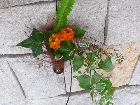 今日はロビーに生けてる小さな生け花をご紹介致します。
