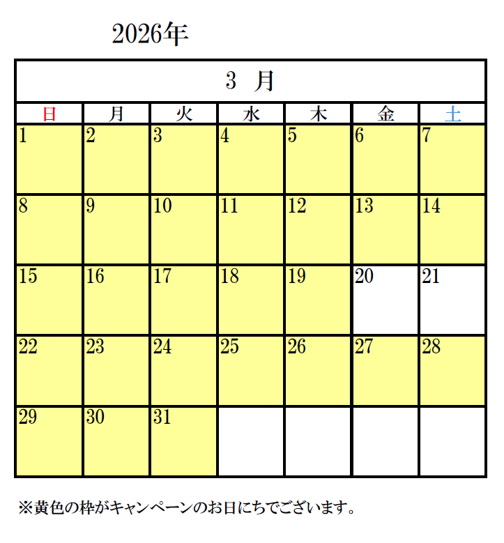 半額対象日は、下記掲載のカレンダーをご確認ください。